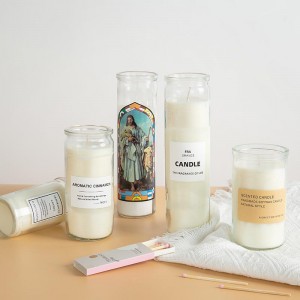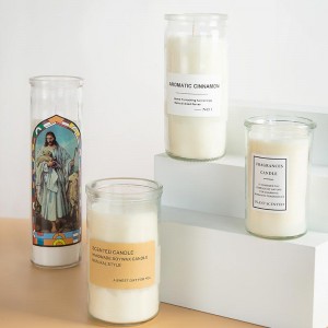 This transparent religious glass candle holder is used by parishioners of many faiths as tools for prayer, devotion, ritual, meditation, protection and healing. It is easy to use and well liked because they tend to be safer from fire hazards due to their enclosed nature. They are often used in conjunction with other spiritual products. This column glass candle jar is a perfect ideal for home prayer use.