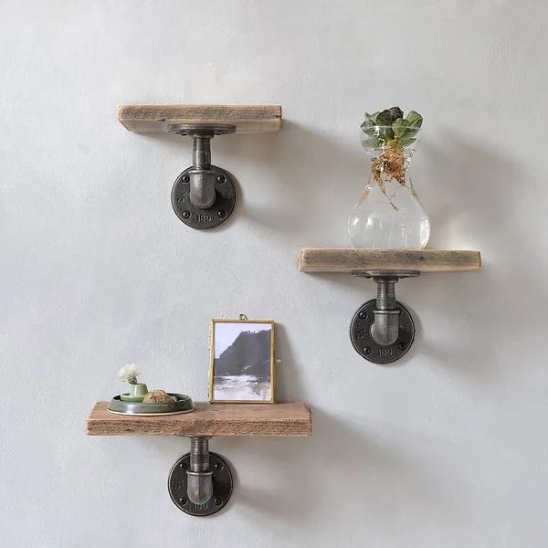 Vintage Design- Shelf Brackets Industrial Pipe Bracket for Floating Shelves for Farmhouse Home Decor adopts finest wooden shelf with nature texture and sanded touch, matches dark cast iron holder with industrial pipe shape, bring the graceful and delicate aesthetics.