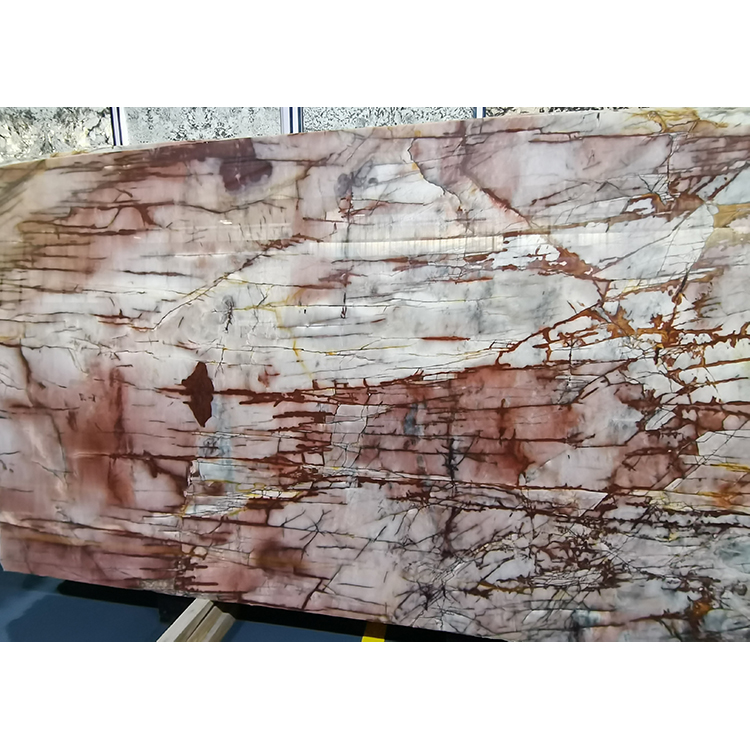 This quartzite stone may be used for a variety of things, including worktops, kitchen countertop, table top and backlight wall cladding, stairs, window sills, and numerous design applications. Other names for this quartzite are Cristallo Cosmopolitan Quartzite and Cosmopolitan Red Quartzite.