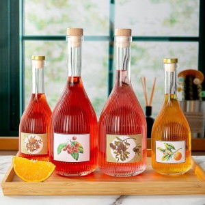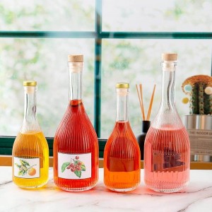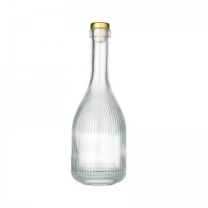 Made with high quality flint glass, the unique shape of the Glass Whiskey Beverage Bottle will make your product stand out on the shelf. The stylish bottle features a long and thin neck and vertical stripe. This glass bottle is ideal for home brewed moonshine or whiskey and would also make a great bottle for mixers and juices. Make these glass liquor bottles perfect additions for any home-bar or kitchen counter or drinks cabinet. Also great for themed parties, bachelor parties and as gifts.