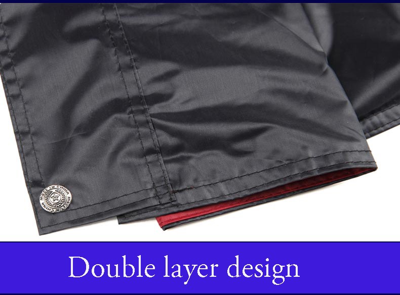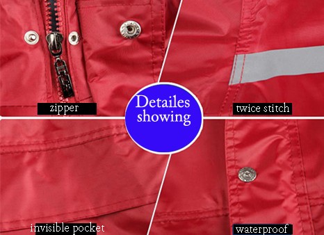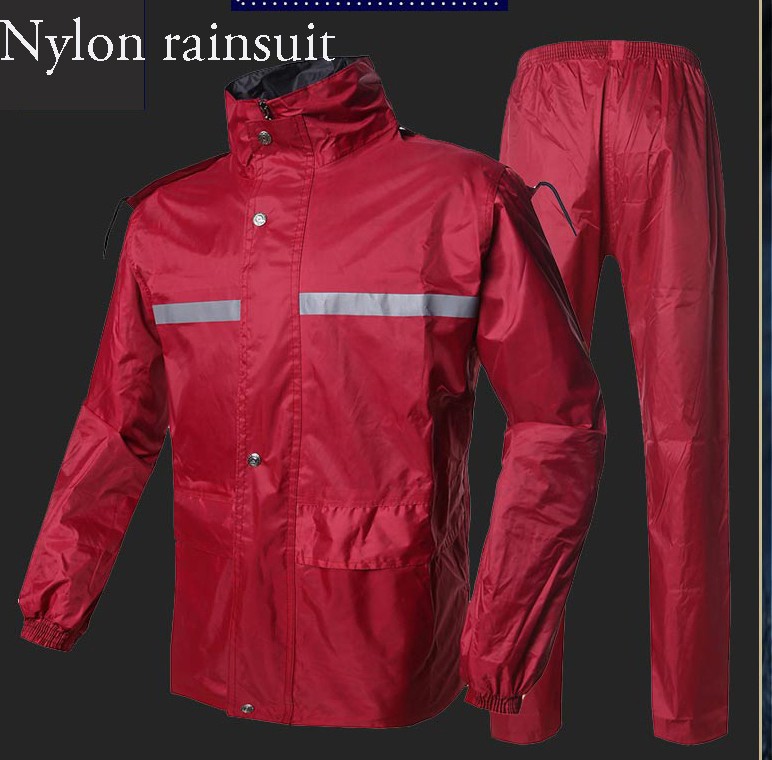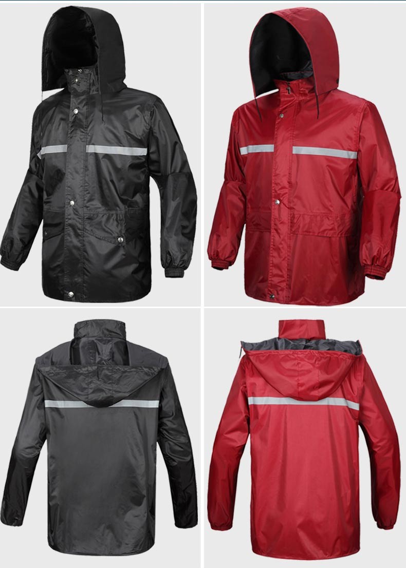 Put on rain resistant rainsuit.It keeps you from the rain while remaining warm enough in the wind.Hood string can be adjustment. Or it’s simple to take off if need be. The pants with elastic tape is also comfortable.
