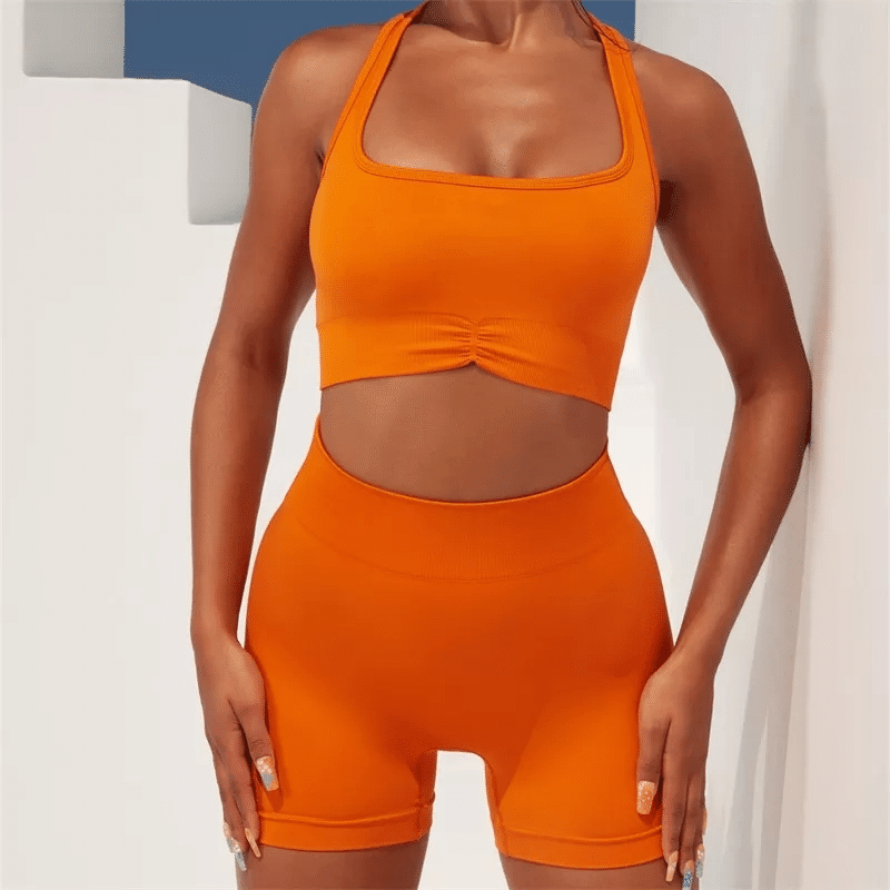 Vest Top Short Sets Seamless Fitness Tights Tank Suit Shorts with Pockets Leggings for Women Yoga Sets